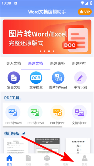 1、打開Word文檔編輯助手APP,點(diǎn)擊我的,進(jìn)入個(gè)人頁面。