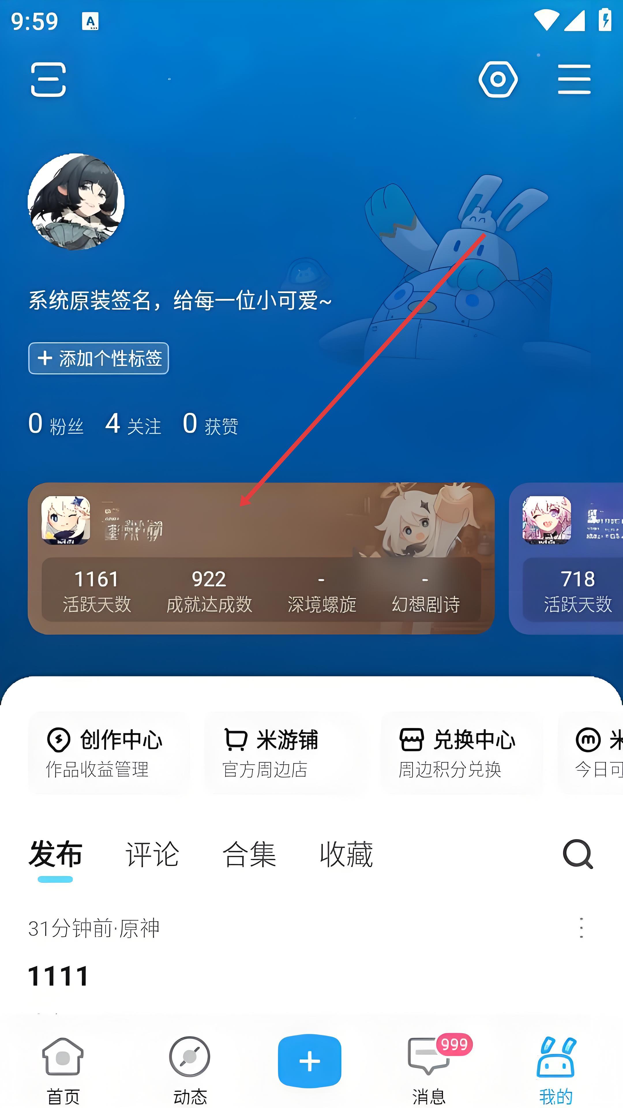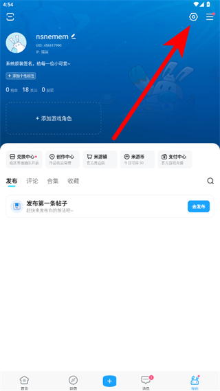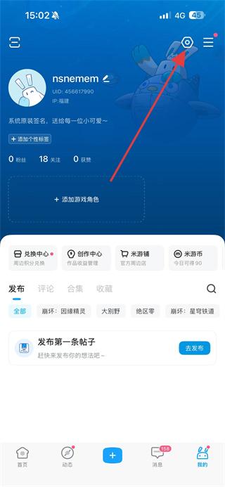 1、打開米游社App,點擊底部導(dǎo)航欄最右側(cè)的我的,進入個人頁面。