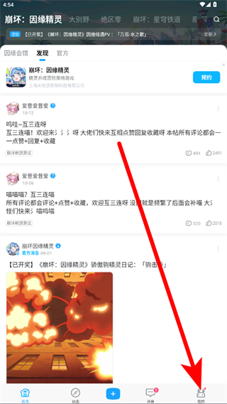 1、打開米游社應(yīng)用,點擊底部導(dǎo)航欄的我的選項。