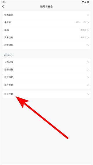 4、在賬號與安全頁面中,找到并點擊賬號注銷選項,按照后續(xù)提示完成注銷操作。