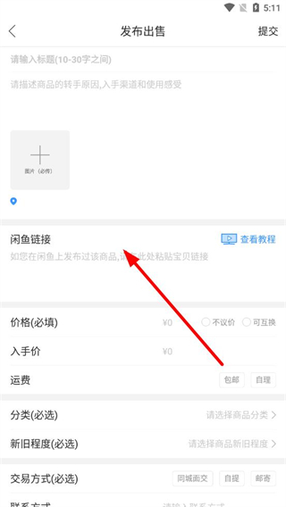 3、在發(fā)布出售頁面填寫商品標(biāo)題、描述、價格、分類等信息,并上傳商品圖片,填寫閑魚鏈接。