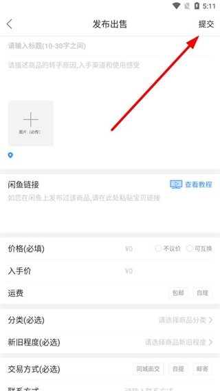 4、信息填寫完成后點(diǎn)擊右上角提交按鈕,即可發(fā)布二手商品進(jìn)行售賣。