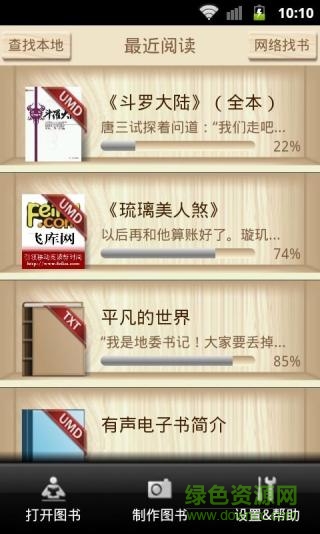 有聲電子書(shū)支持格式為txt, jpg, umd書(shū)藉的閱讀, 而且特別加入了有聲閱讀和圖書(shū)制作功能。