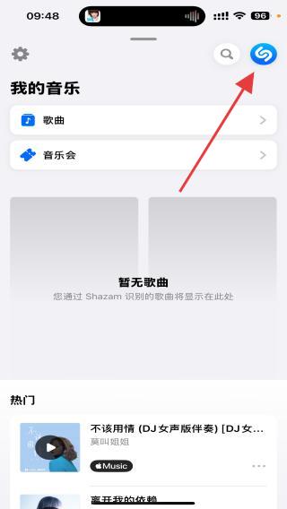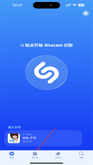 1、啟動(dòng)ShazamAPP進(jìn)入到首頁(yè)內(nèi),點(diǎn)擊右上角藍(lán)色的圖標(biāo)。