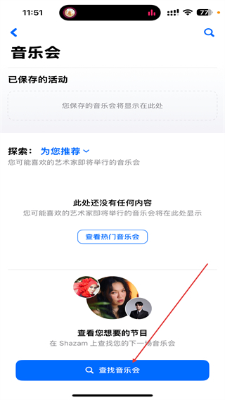 2、進(jìn)入音樂會(huì)的界面內(nèi),點(diǎn)擊下方查找音樂會(huì)的功能按鈕。