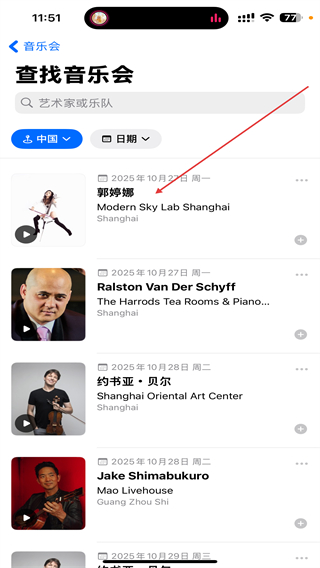 3、選擇并點(diǎn)擊想要查找的音樂會(huì)名稱,即可查看詳情內(nèi)容。