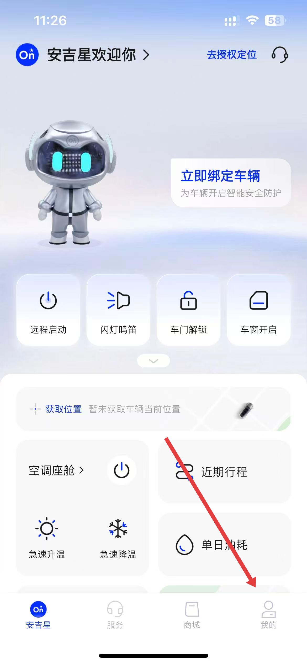 1、打開(kāi)安吉星APP,點(diǎn)擊底部導(dǎo)航欄中我的選項(xiàng),進(jìn)入個(gè)人相關(guān)頁(yè)面。