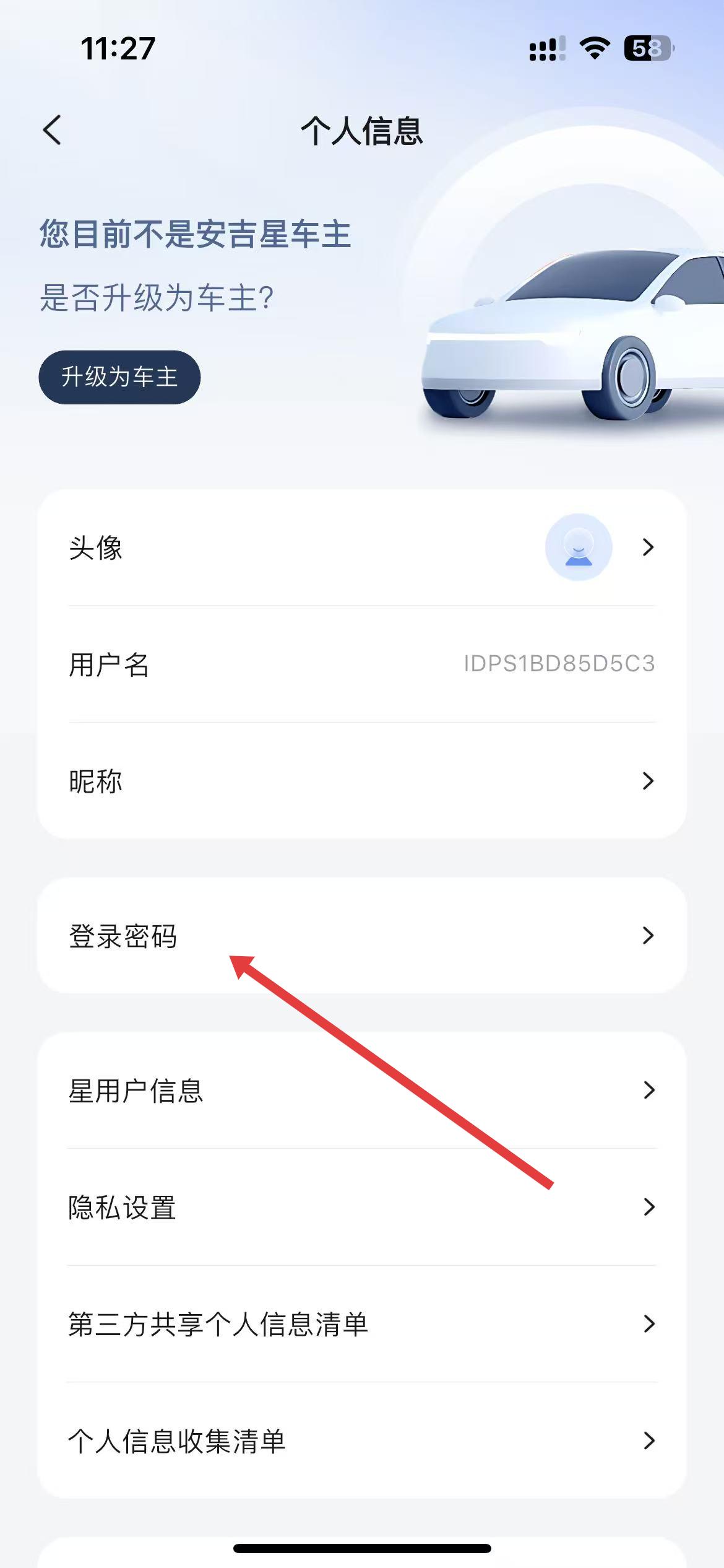 3、在個(gè)人信息界面中,找到并點(diǎn)擊登錄密碼選項(xiàng),進(jìn)入更改密碼頁(yè)面。
