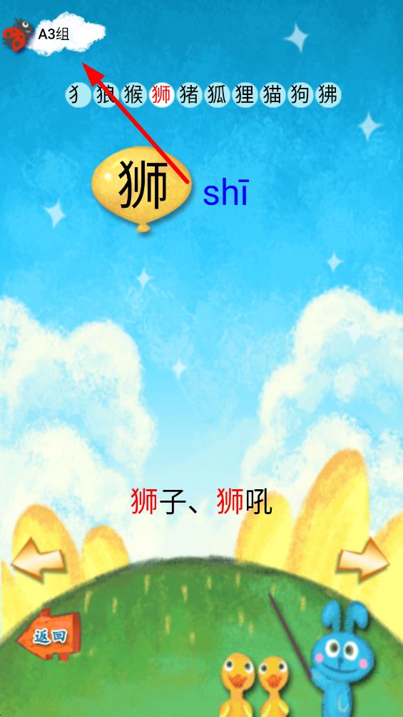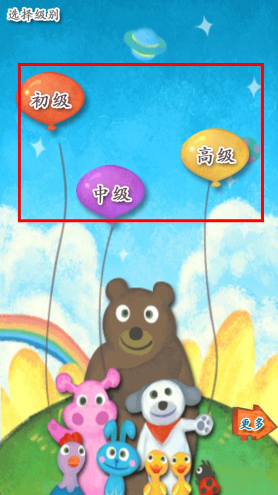 1、打開我愛漢字app首頁選擇級別界面,根據(jù)自身漢字水平點(diǎn)擊對應(yīng)氣球狀按鈕選擇學(xué)習(xí)級別。