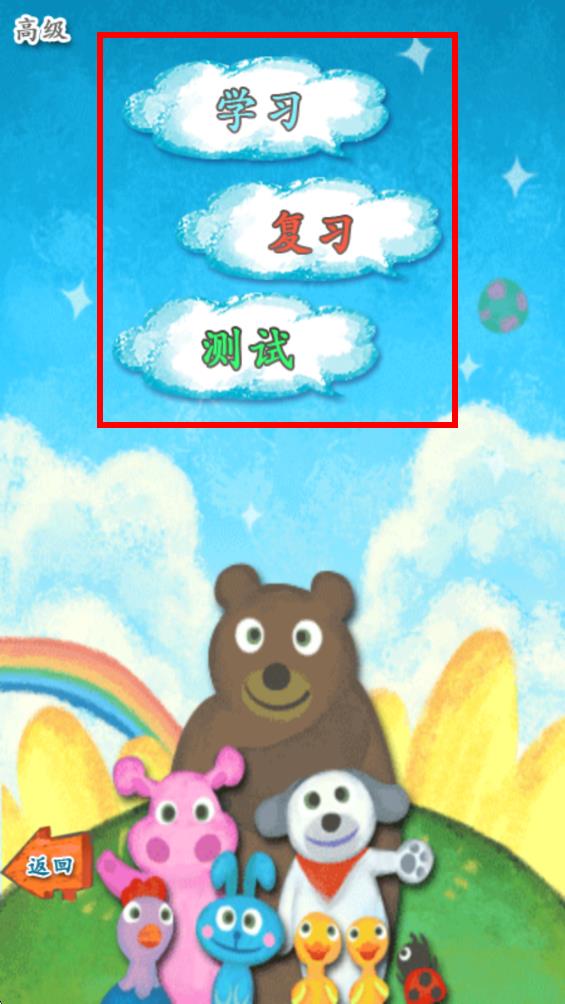 2、選擇好級別后進(jìn)入新界面有多個(gè)選項(xiàng),若想學(xué)習(xí)新漢字點(diǎn)擊學(xué)習(xí),要鞏固已學(xué)漢字點(diǎn)擊復(fù)習(xí),想檢驗(yàn)學(xué)習(xí)成果點(diǎn)擊測試。