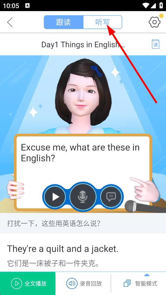 2、在練習(xí)界面上方,點(diǎn)擊聽寫按鈕,切換至聽寫模式并選擇對(duì)應(yīng)的學(xué)習(xí)內(nèi)容。