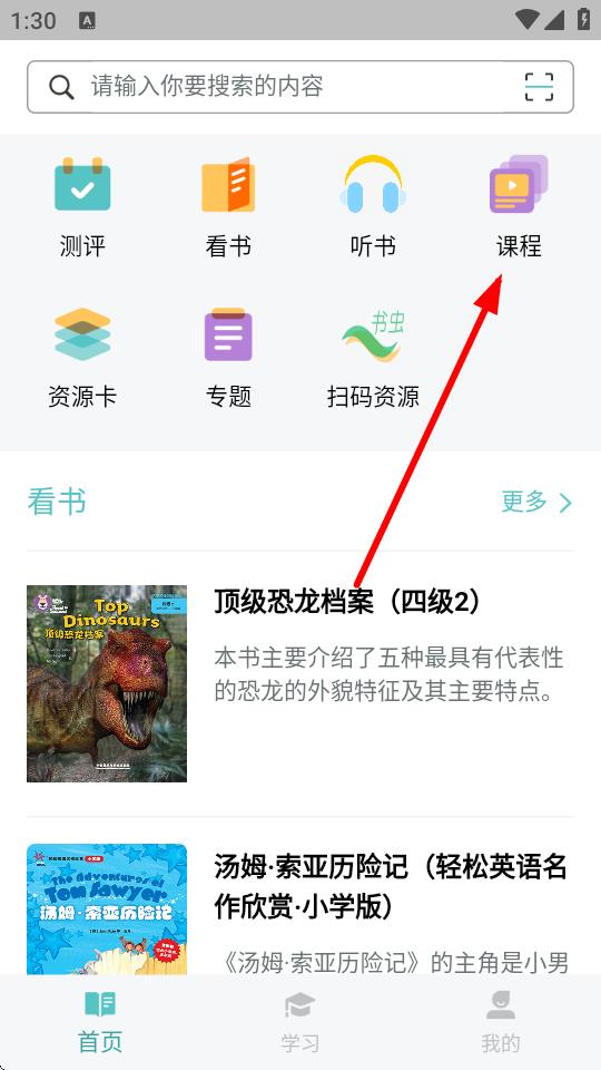 2、在首頁界面里,找到并點(diǎn)擊課程圖標(biāo),進(jìn)入課程選擇頁面。