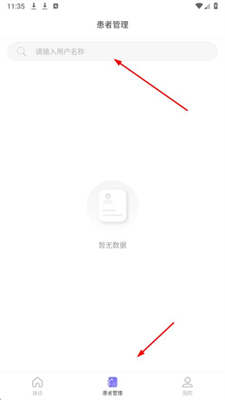 2、通過患者管理頁面的搜索框,可查詢患者信息,方便醫(yī)生對患者進行管理,掌握患者診療情況。