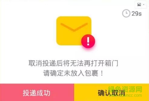 5.取消投遞(因包裹過大無法放入柜中,需取消投遞)。如確認(rèn)取消,系統(tǒng)不會再次開箱,直接結(jié)束此訂單?;蛘?0秒倒計(jì)時結(jié)束,系統(tǒng)默認(rèn)投遞成功訂單上傳。