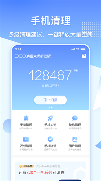 360清理大師極速版是一款手機(jī)與空間清理軟件,超強(qiáng)極速的手機(jī)清理工具!更簡(jiǎn)單,更暢快!強(qiáng)力使手機(jī)運(yùn)行更流暢,一鍵清理快速解決空間不足問(wèn)題。歡迎在綠色資源網(wǎng)下載使用。