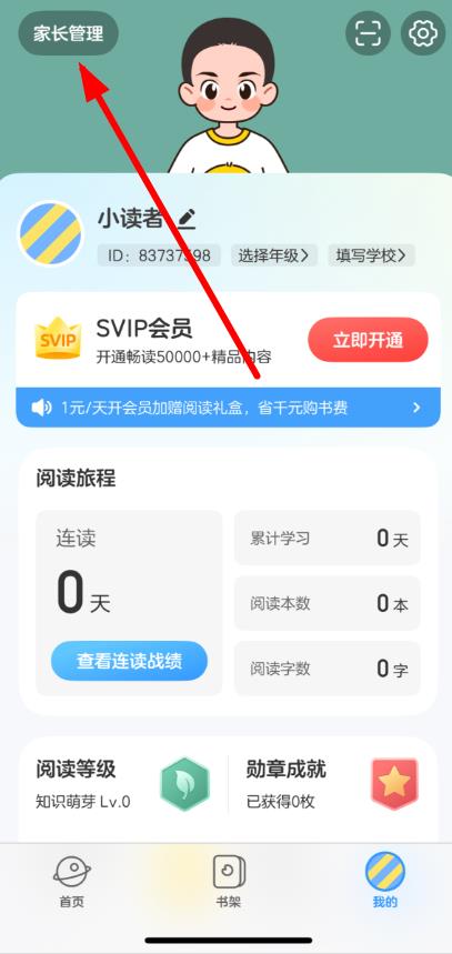 2、在個(gè)人頁(yè)面中,點(diǎn)擊家長(zhǎng)管理選項(xiàng)。