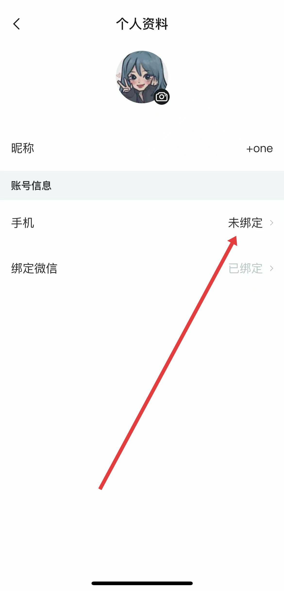 2、在個人資料頁面中,找到手機(jī)選項(xiàng),點(diǎn)擊未綁定,進(jìn)入關(guān)聯(lián)手機(jī)號頁面。