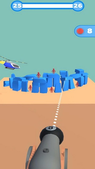 2、瞄準(zhǔn)地圖中的方塊,發(fā)射小球?qū)⒎綁K壘成的物品擊倒。