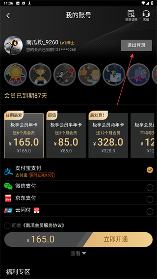 2、在我的賬號界面內(nèi),點擊右側(cè)退出登錄的按鈕。