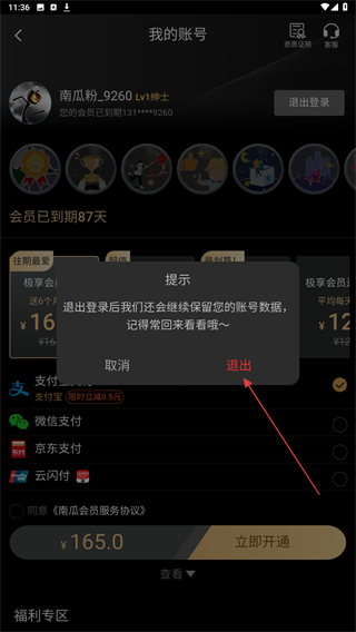 3、當(dāng)界面彈出退出提示后,點擊退出的按鈕即可完成。