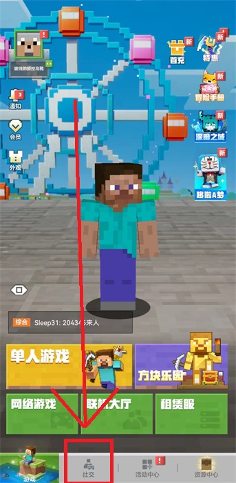 1、打開游戲進入到游戲主界面中之后,我們需要點擊下方導航欄中的【社交】進入到游戲社交界面中;