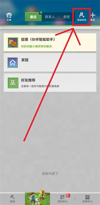 2、在社交界面中我們可以看到右上角會有一個【添加好友】點擊就可以進入到該功能界面;