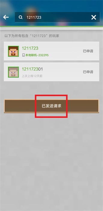 5、最后我們就可以看到界面中提示【已發(fā)送請求】就可以等待好友同意申請即可。
