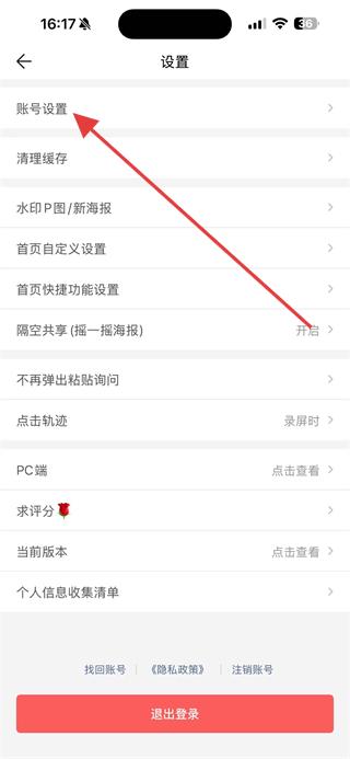 3、在設(shè)置頁面中選擇賬號設(shè)置,進入賬號相關(guān)操作管理頁面。