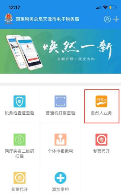 1、打開“天津稅務(wù)”手機(jī)APP,選擇“辦稅-自然人業(yè)務(wù)”,按提示完成注冊。