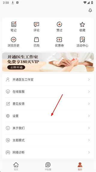 2、在我的頁面中,點擊設(shè)置選項。