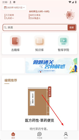 1、打開中醫(yī)智庫APP,點擊我的選項。