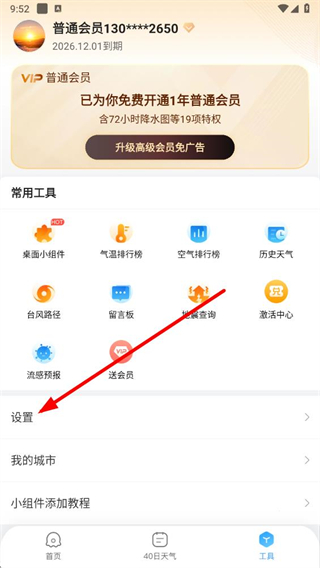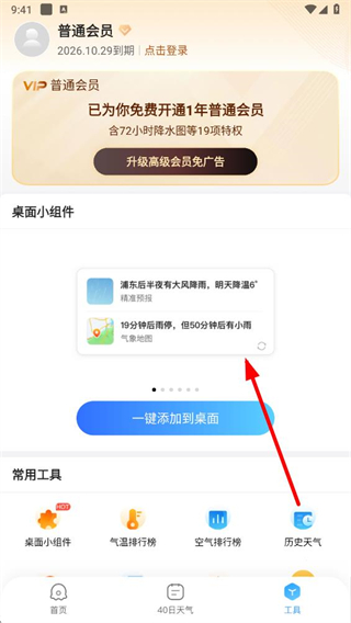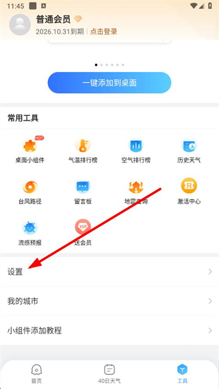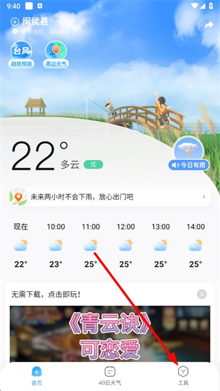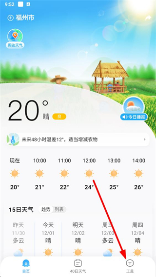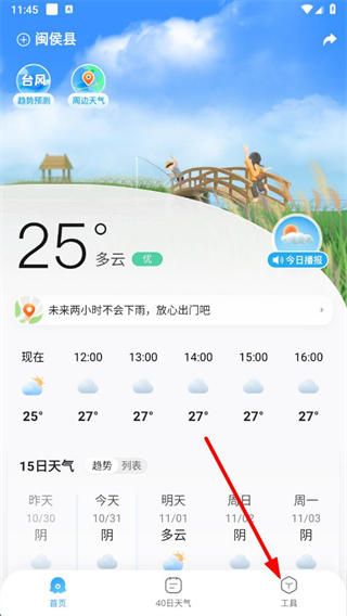 1、在2345天氣王app首頁(yè)點(diǎn)擊工具選項(xiàng),進(jìn)入工具頁(yè)面。