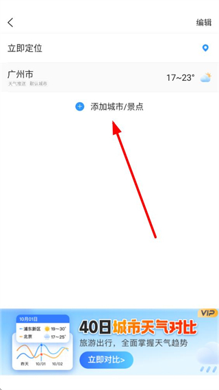 3、在我的城市頁(yè)面,點(diǎn)擊添加城市景點(diǎn)選項(xiàng)。