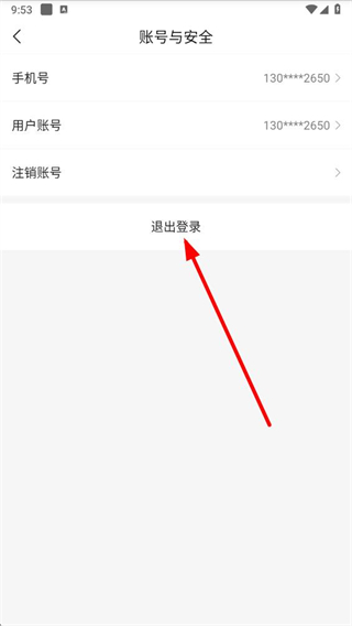 4、在賬號(hào)與安全界面,點(diǎn)擊退出登錄選項(xiàng),即可完成賬號(hào)的退出操作。