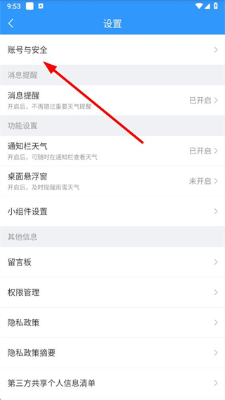 3、在設(shè)置頁(yè)面,選擇賬號(hào)與安全選項(xiàng),進(jìn)入賬號(hào)與安全界面。