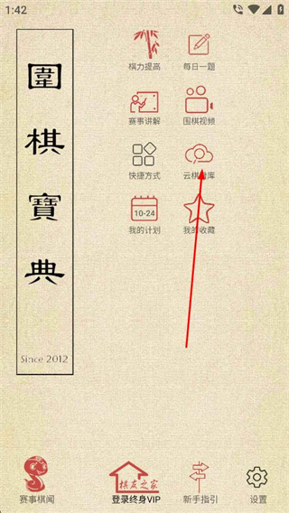1、打開圍棋寶典app,找到并點(diǎn)擊上方云棋譜庫(kù)選項(xiàng)。
