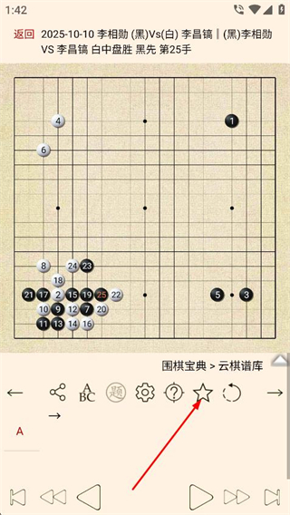 3、進(jìn)入棋譜詳情頁(yè)面后,點(diǎn)擊下方的星形收藏圖標(biāo)。