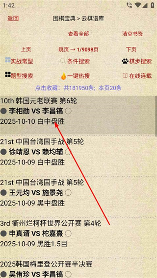 2、在云棋譜庫(kù)頁(yè)面中,選擇并點(diǎn)擊需要收藏的棋譜。