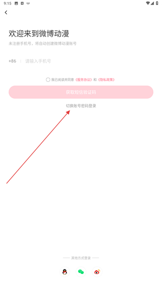 3、進入登錄的頁面內(nèi),點擊切換賬號密碼登錄。