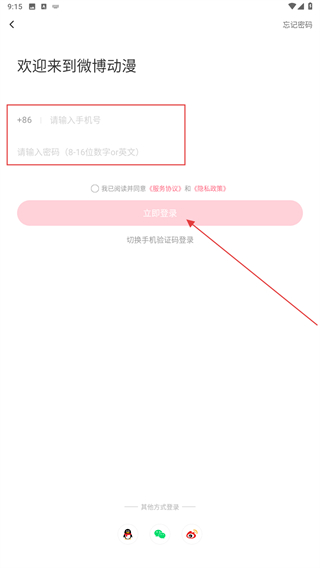 4、輸入手機號、密碼后,再點擊立即登錄即可完成。