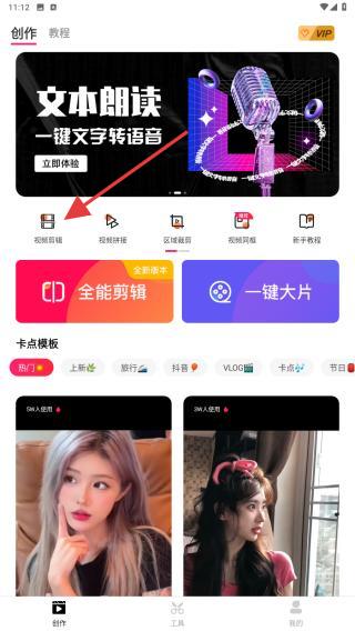 1、打開APP,用戶需點(diǎn)擊視頻剪輯的功能選項(xiàng)。