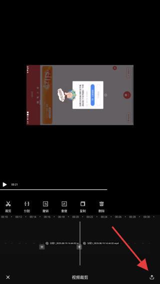 4、完成后點(diǎn)擊右下角↑導(dǎo)出的圖標(biāo),即可保存或分享視頻。