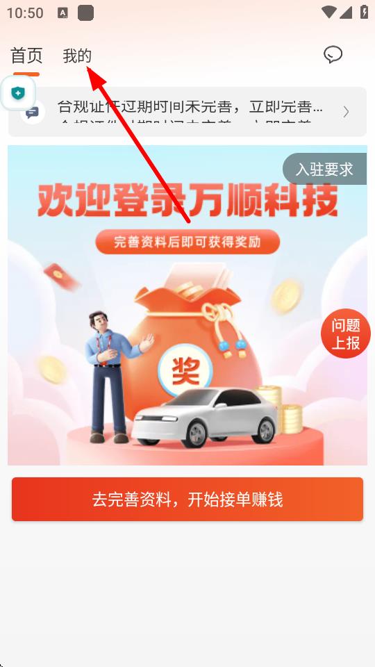 1、打開萬順車主APP,點擊底部導航欄中的我的選項,進入個人頁面。