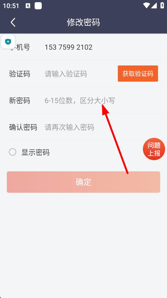 4、進入修改密碼頁面,輸入手機號,點擊獲取驗證碼,并再次輸入新密碼進行確認,最后點擊確定即可完成。