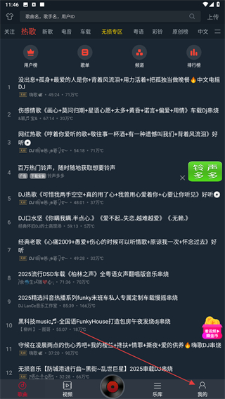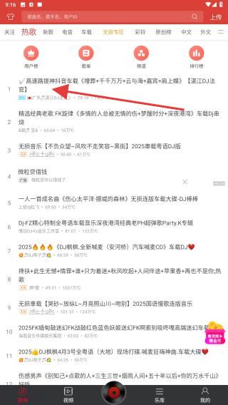 1、打開dj多多APP,點(diǎn)擊想要播放的音樂名稱。