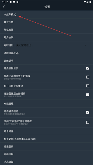 3、進(jìn)入設(shè)置的界面內(nèi),點(diǎn)擊未成年模式的按鈕。