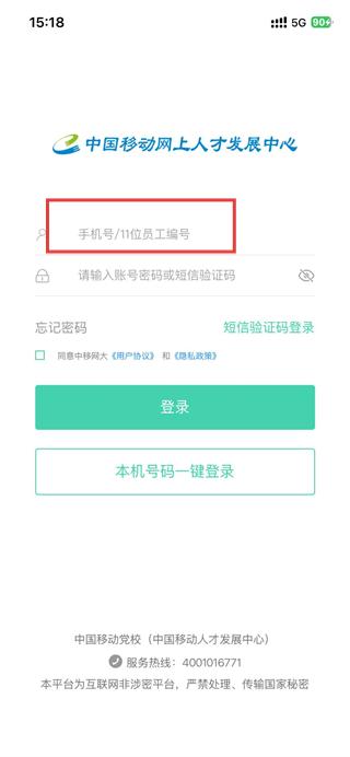 3、在賬號登錄頁面,在輸入框中輸入手機號/11位員工工號。