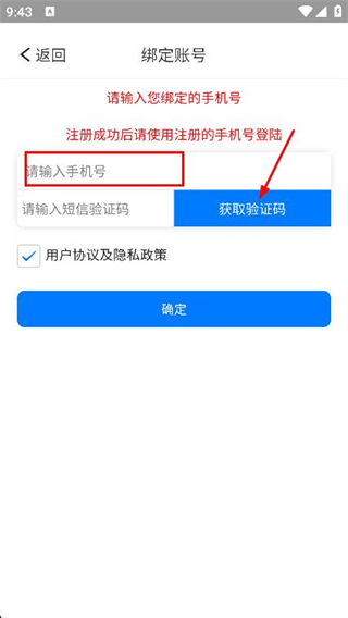 2、填寫需要注冊的手機號碼,點擊獲取驗證碼。
