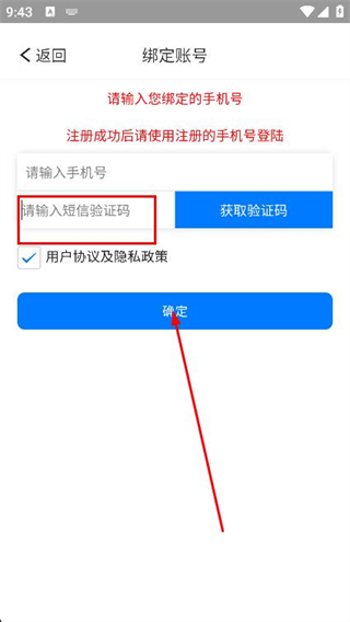 3、填入收到的驗證碼,點擊確定即可完成注冊。