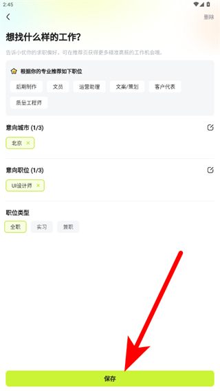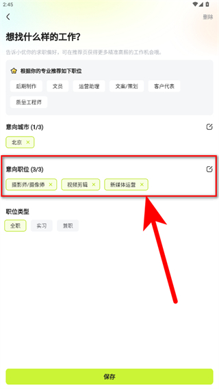 4、選好新的意向職位后,點(diǎn)擊底部保存按鈕,完成求職信息修改。